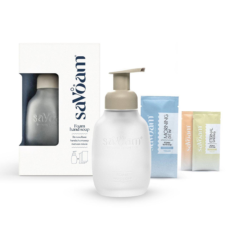 Met saVoam handschuimzeep zorg je goed voor jezelf, en de natuur. En dat is geen overbodige luxe. Handzeep in plastic flessen zorgt namelijk voor onnodig afval en watertransport. Dat kan makkelijk anders. saVoam is een heerlijke, navulbare handschuimzeep geïnspireerd door de Nederlandse kust. De sterke, glazen fles is gemaakt om levenslang mee te gaan. De zeep maak je simpelweg thuis door de speciaal ontwikkelde geuren aan te vullen met kraanwater.saVoam... Wat mooi is, moet mooi blijven