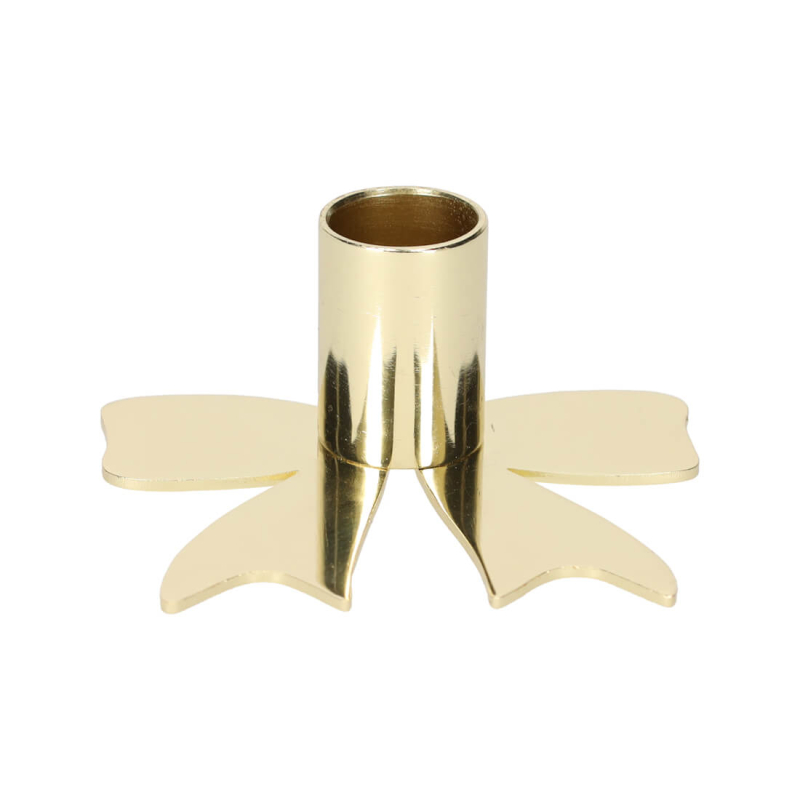 Deze prachtige kandelaar in de vorm van een sierlijke strik voegt direct een feestelijke en stijlvolle uitstraling toe aan ieder interieur. Perfect voor het creëren van een warme sfeer tijdens de feestdagen of een romantisch diner. De kandelaar biedt ruimte voor een dinerkaars en is een echte blikvanger op elke tafel, schouw of vensterbank.
