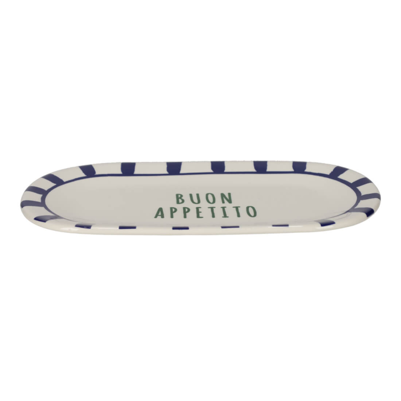 Met dit serveerbord met de tekst 'Buon Appetito' haal je de Italiaanse gezelligheid in huis. Het bord van hoogwaardig keramiek is perfect voor het presenteren van hapjes, snacks en bijgerechten tijdens het diner. Door het vrolijke design is het bord een feestelijke toevoeging op iedere tafel!