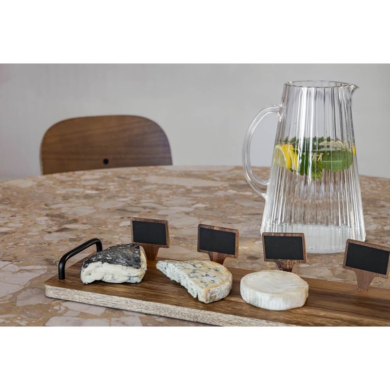 Met deze proefplank kun je op een originele wijze borrelhapjes presenteren. Denk aan verschillende soorten kaas of vleeswaren. De metalen handvatten zorgen voor een stevige houvast en een stoere uitstaling. Op de krijtbordjes kun je met behulp van het meegeleverde krijtje de naam van het hapje opschrijven.