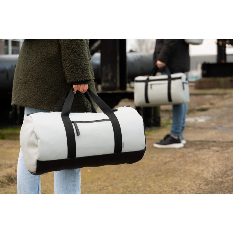 Deze handige duffeltas is ideaal voor elke gelegenheid. Gebruik hem voor een weekendje weg of voor een bezoek aan de sportschool. De tas is gemaakt van Dull PU, een waterafstotend vegan leer. De tas is voorzien van waterdichte ritsen en kan worden gedragen aan de handvatten of de afneembare schouderband. De binnenzijde bestaat uit een groot hoofdcompartiment, een ritsvak en twee netzakjes. Daarnaast bevindt zich aan de zijkant van de tas een netvak voor extra opbergruimte.