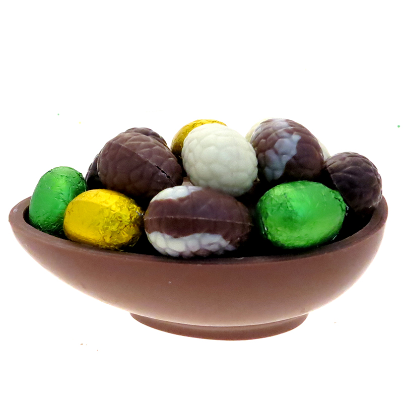 Een luxe chocolade paasei op voet gevuld met heerlijke paaseitjes. Dit luxe paasei is gemaakt van Belgische Callebaut chocolade; hoogwaardige chocolade gemaakt van 100% duurzaam geteelde cacaobonen.