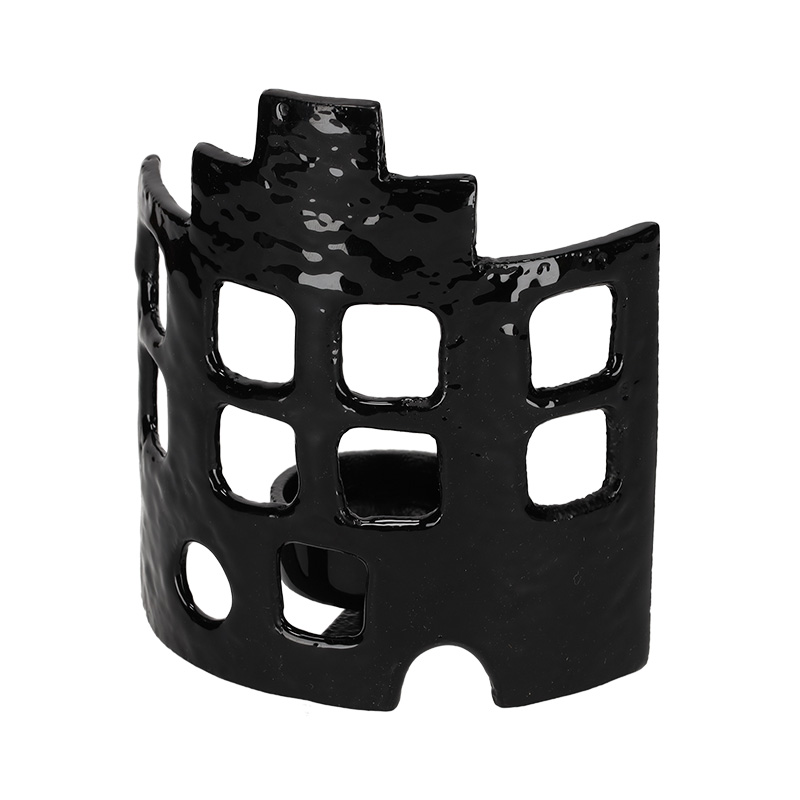 Deze metalen theelichthouder in de vorm van een huis brengt sfeer in ieder interieur. Plaats een theelicht in de houder achter het huis en het warme kaarslicht zal prachtig door ruiten schijnen.