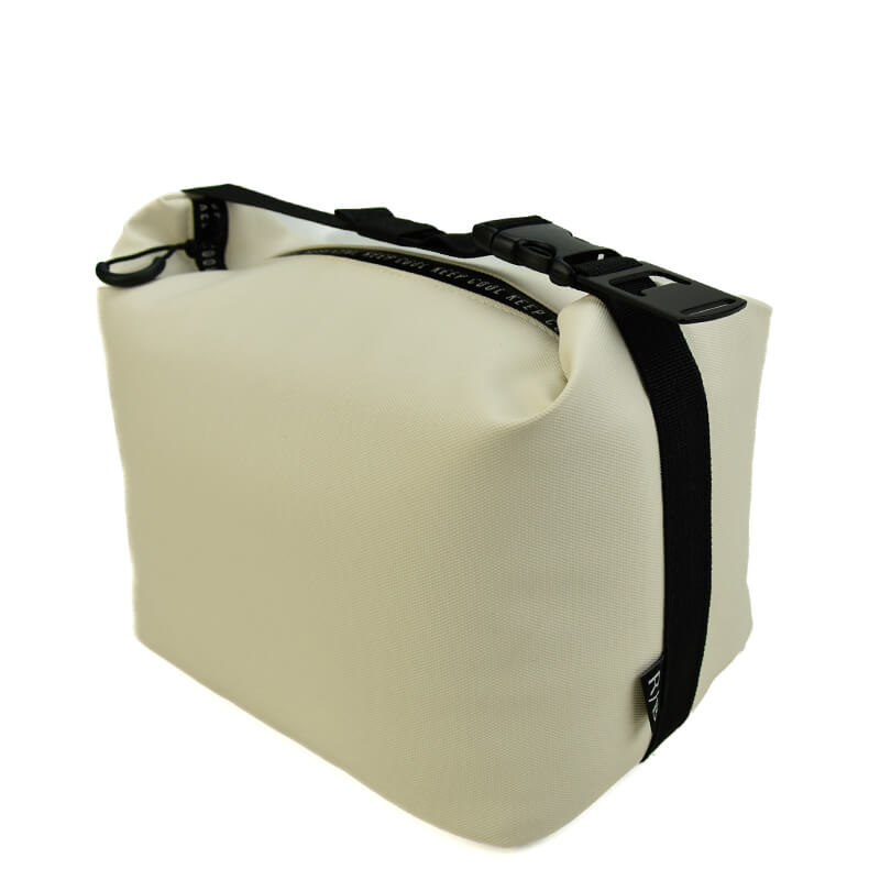 Verras je personeel of klanten met een mini koeltas. Super leuk als zomergeschenk. Een isolerend koeltasje met 1 vak, perfect voor één of twee personen. De mini koeltas is voorzien van een milieuvriendelijke Peva Lining en foam, dit geeft een uitstekende isolatie en is zeer gemakkelijk schoon te maken. De getapete rits met repeterende tekst ‘keep cool’ heeft een puller met een zwart treklusje. De onderkant van de koeltas is gemaakt van zwart tarpaulin.