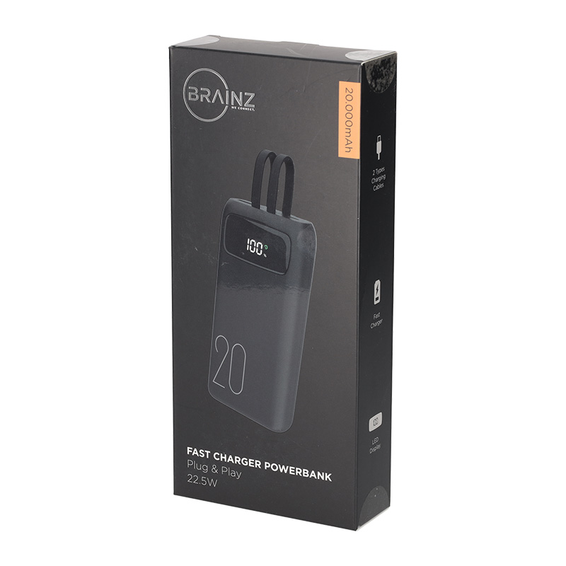 Powerbank Built-in Cables 20.000 mAh - BRAINZ