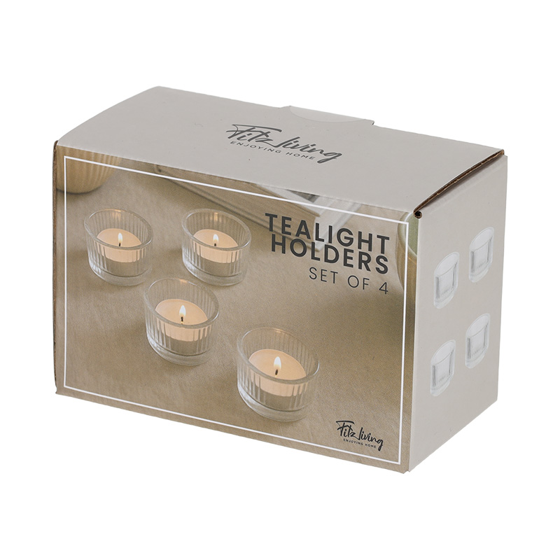 Deze set van 4 theelichthouders zorgt direct voor een warme en gezellige uitstraling in elke ruimte. Dankzij het compacte formaat passen de theelichthouders moeiteloos op tafels, dressoirs of vensterbanken.