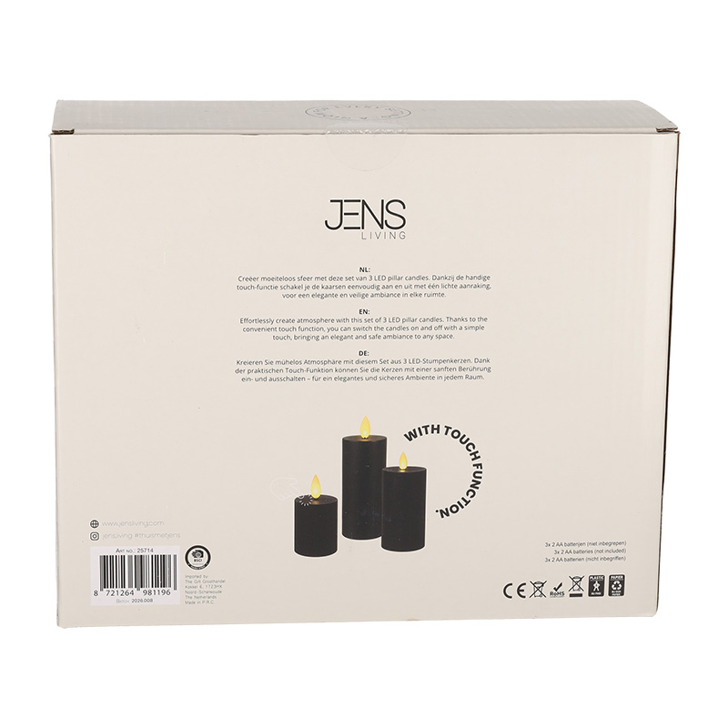 • JENS Living LED Stompkaarsen Zwart set van 3 25714 4