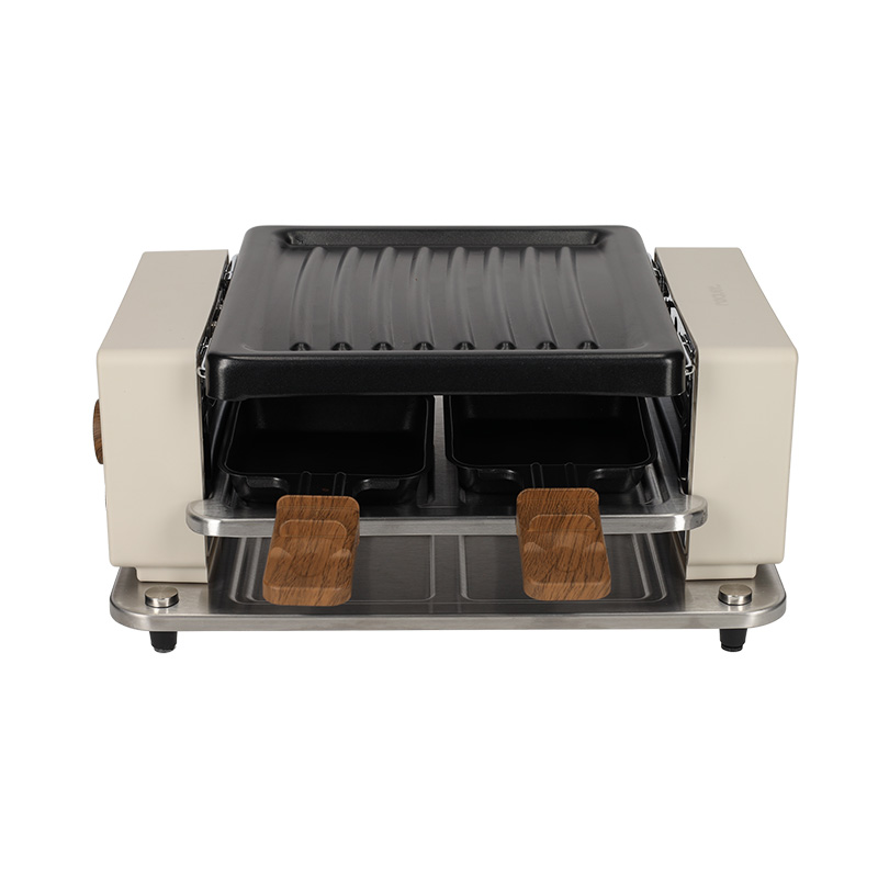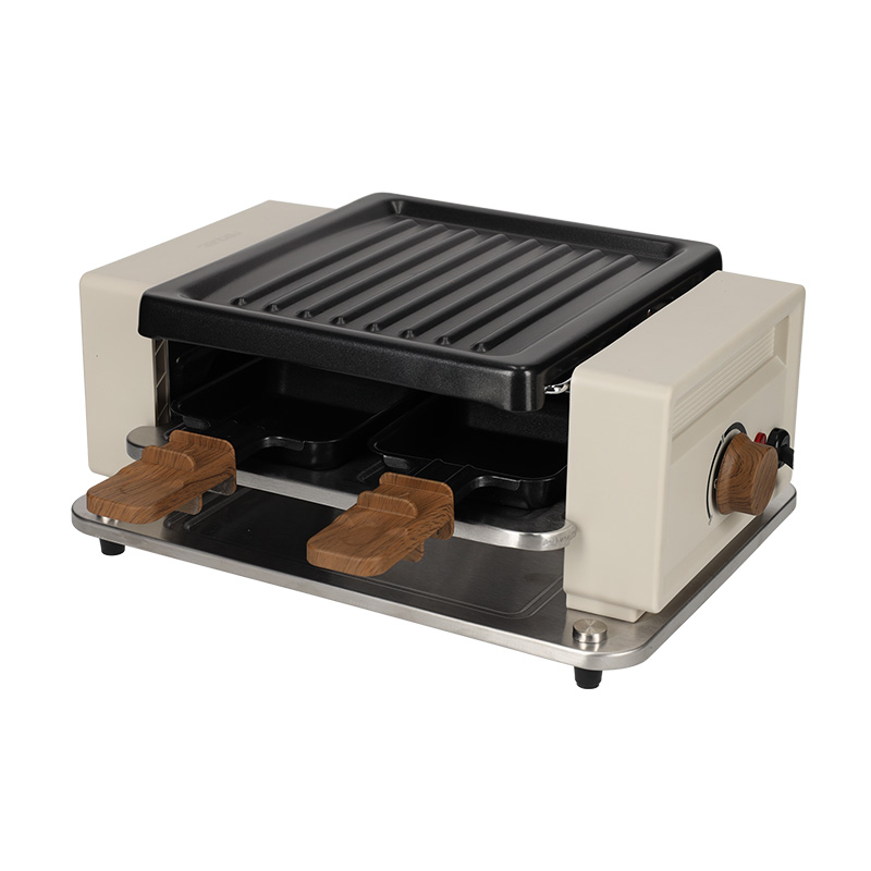 Dit gourmetstel is ideaal voor een knusse avond met vrienden of familie en biedt ruimte voor vier personen. De grillplaat en pannetjes zorgen voor een eindeloze variatie kleine gerechtjes. De combinatie van het moderne ontwerp en de handgrepen met houtlook geven het apparaat een warme uitstraling. De temperatuur is regelbaar met de knop aan de zijkant.