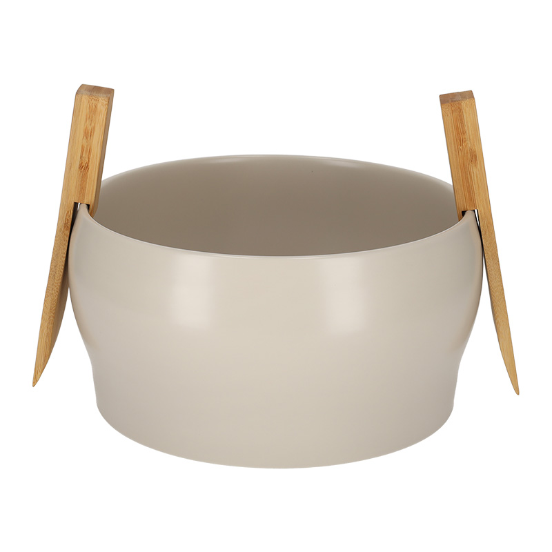 Deze set is een stijlvolle toevoeging voor elke maaltijd. De keramieken schaal heeft een moderne look en wordt geleverd met bijpassend, houten bestek. Perfect voor frisse salades, pastagerechten of het serveren van bijgerechten tijdens een diner. Een praktische en elegante toevoeging aan elke gedekte tafel.