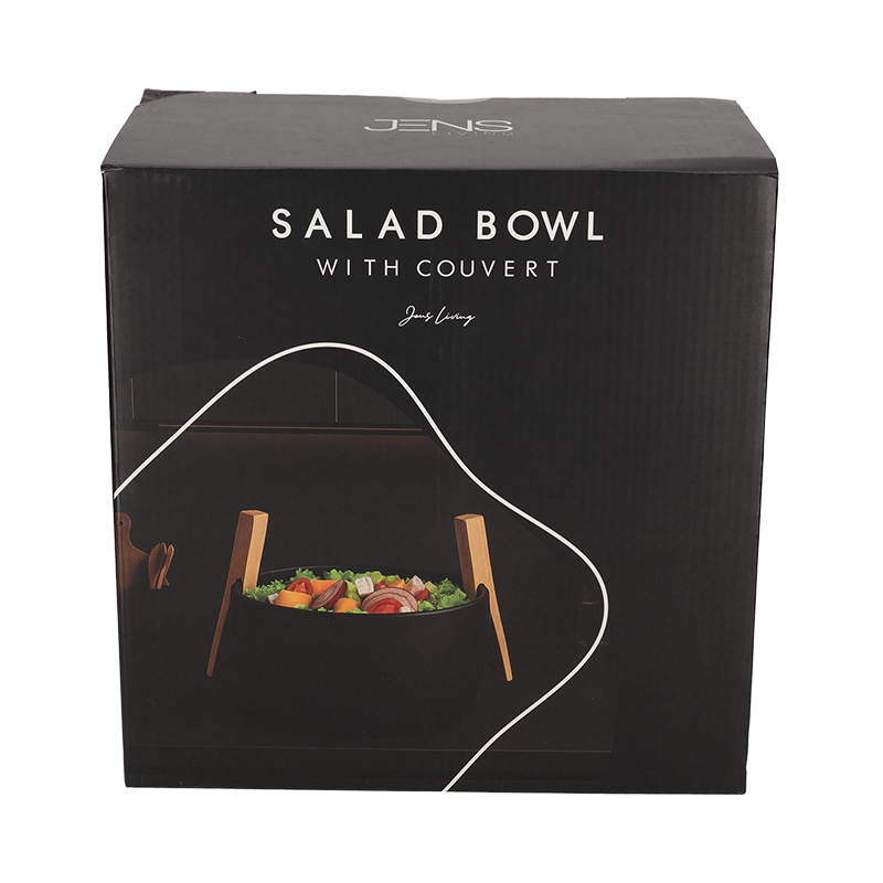 JENS Living Saladeschaal Met Bestek Zwart 25757