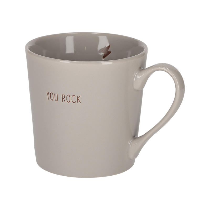 Deze keramieken mok met oor heeft een glanzende afwerking en een inhoud van 370 ml. Op de voorzijde staat de quote: 'You Rock'. De binnenkant bevat een gegraveerd icoon. De perfecte mok om ieder koffie of theemoment een persoonlijke touch te geven!