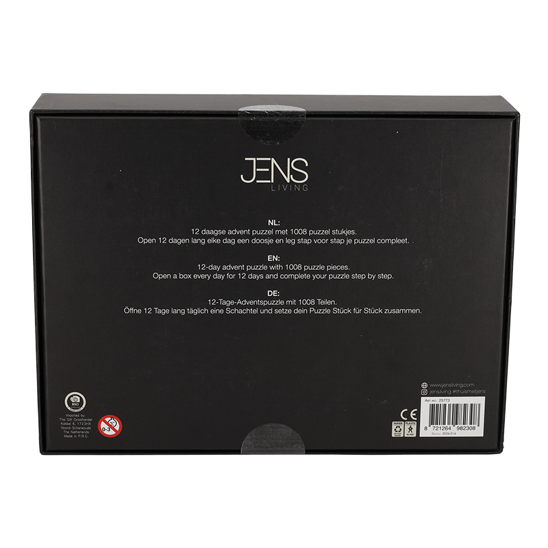 Dit is de perfecte adventskalender voor puzzelliefhebbers. Open 12 dagen lang een doosje en leg stap voor stap je puzzel compleet. De advent puzzel bevat 1008 puzzel stukjes en heeft een winters thema.