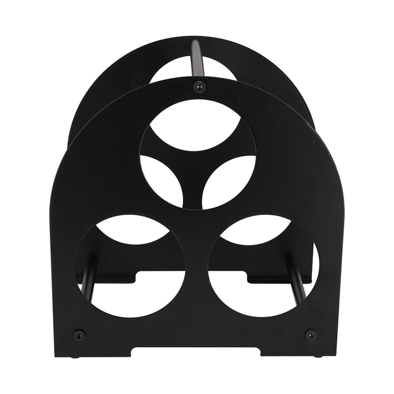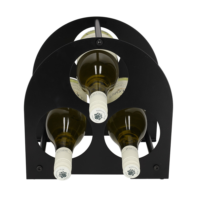 Dit wijnrek biedt een stijlvolle manier om drie flessen wijn compact op te bergen. Het rek is volledig gemaakt van metaal, wat zorgt voor een stevige constructie en een moderne look, geschikt voor ieder interieur. Perfect voor op het aanrecht, in een kast of als decoratief accent in de woonkamer. Een praktische en smaakvolle accessoire voor de echte wijnliefhebber.