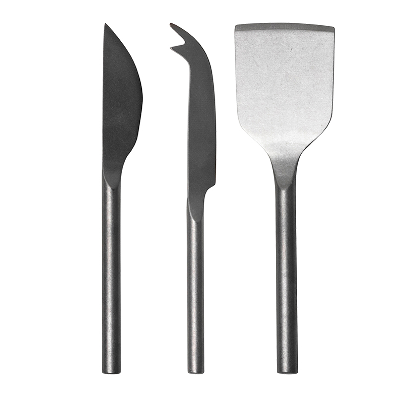 Maak je kaasplankje af met deze kaasmesjes in "Vintage'' style. Verschillende mesjes voor verschillende kaasjes.Verpakt in een kraft doosje.