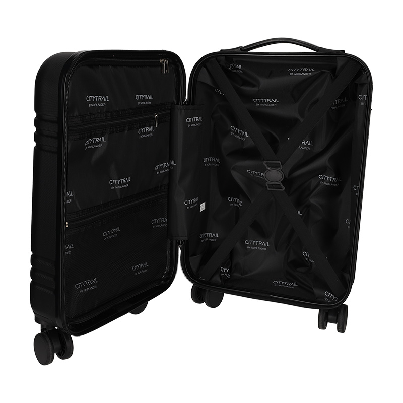 Reis zorgeloos en in stijl met deze luxe trolley. De trolley is uitgerust met vier dubbele 360° roterende wielen en een uitschuifbare aluminium trolleystang met geïntegreerde telefoonhouder. Dankzij het TSA-cijferslot blijven waardevolle spullen veilig opgeborgen. De binnenzijde heeft een gevoerd interieur, verdeeld in een hoofd- en ritsvakcompartiment. In het hoofdvak houden dubbele buckleriemen kleding netjes op hun plek, terwijl het ritsvak ruimte biedt voor kleinere items. Deze trolley is samengesteld volgens de IATA-richtlijnen en mag bij alle aangesloten luchtvaartmaatschappijen mee als handbagage. Aan de bovenzijde zit een ronde badge van 35 x 35 mm. Hier kan eenvoudig een doming sticker overheen worden geplakt.