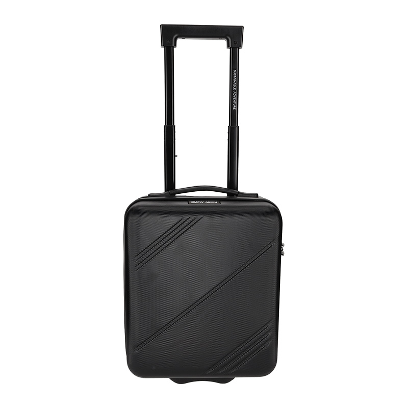 Deze compacte trolley uit de Travel Green lijn is gemaakt van RPET ABS. Voor de productie zijn maar liefst 30 gerecyclede PET-flessen gebruikt, waardoor deze trolley een milieubewuste keuze is voor elke reiziger. De trolley is ontworpen om onder de stoel in het vliegtuig te passen. Hierdoor mag de trolley mee in het vliegtuig en hoef je niet meer te wachten op je bagage! De trolley heeft een uitschuifbare stang en twee luxe soft wieltjes. De binnenzijde bestaat uit een hoofdcompartiment met buckles en een ritsvak. Op de voorzijde bevindt zich een metalen badge waar eenvoudig een domingsticker van 58 x 25 mm kan worden geplaatst.