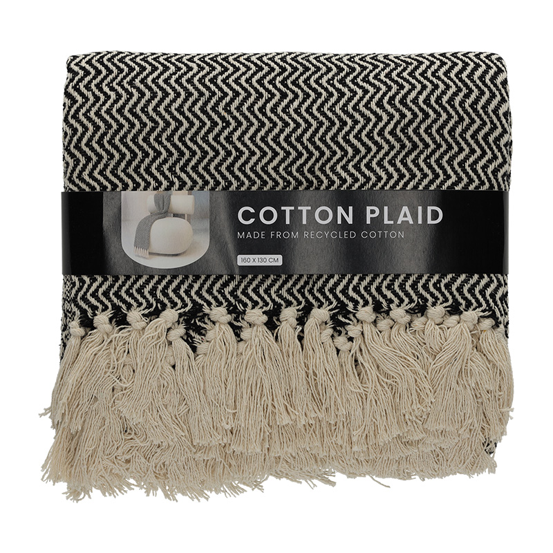 Dit plaid is gemaakt van gerecycled katoen en heeft daardoor een duurzaam karakter. Met het patroon en de trendy kwastjes is dit plaid een leuke verschijning in je interieur. Leg het plaid uitgevouwen op de bank, op het bed of gebruik dit kleed om heerlijk onder te kruipen tijdens de koude winterdagen.