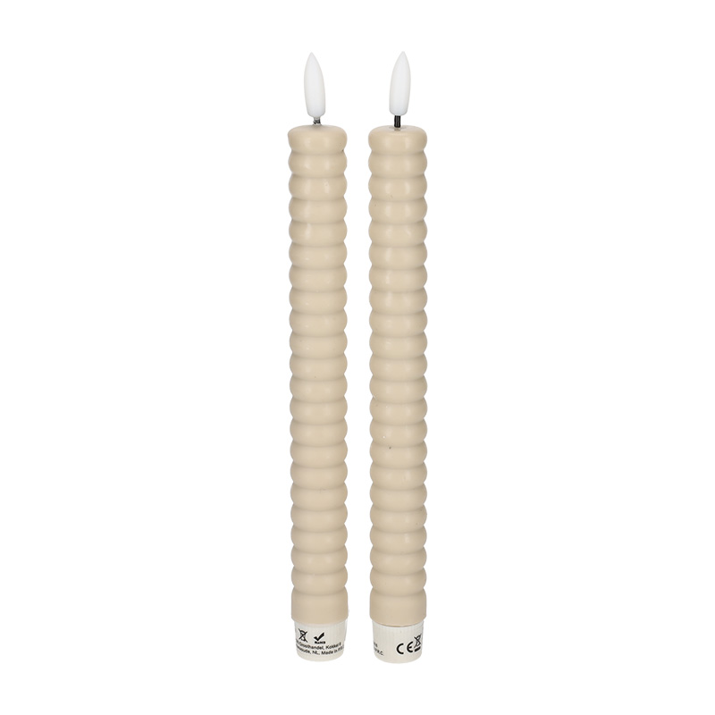 Deze dinerkaarsen met waslaag geven elke tafelsetting direct een gezellige uitstraling. Het flikkerende LED-licht bootst het effect van een echte vlam na, veilig en sfeervol tegelijk. Met de schakelaar zet je de kaarsen eenvoudig aan of uit. Benodigd: 2 x AA batterijen (niet inbegrepen).