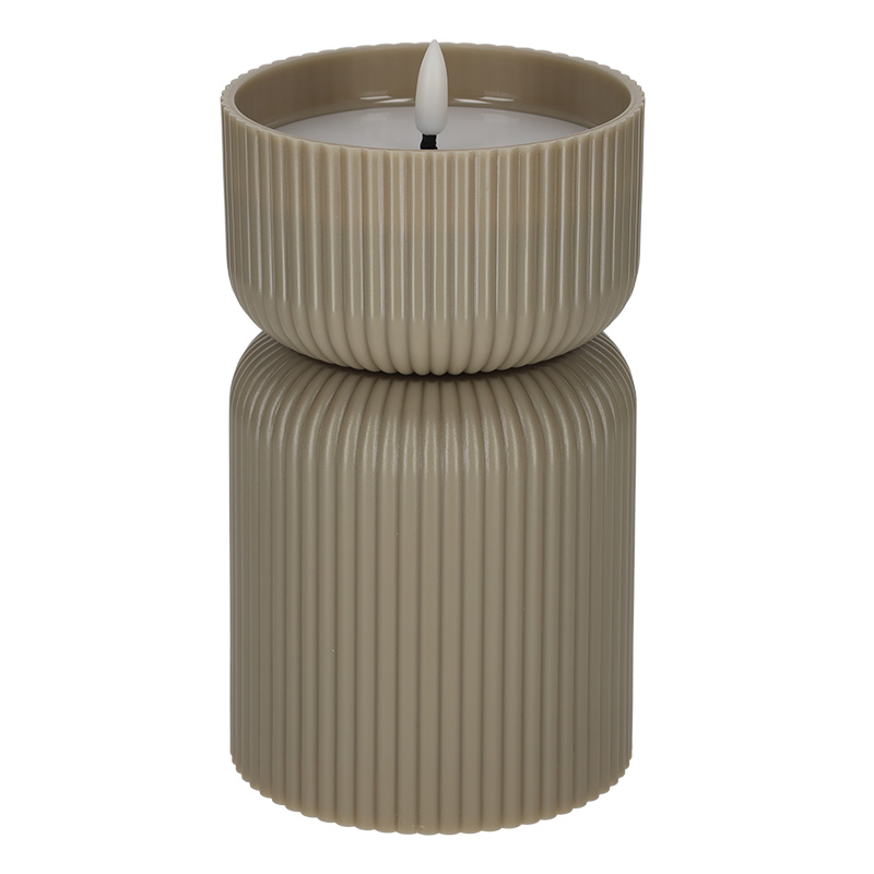 Creëer sfeer in huis met deze stijlvolle LED kaars met geribbelde houder. Door de bewegende vlam is deze bijna niet van echt te onderscheiden. Lange branduren gegarandeerd dus! Benodigd: 3 x AA batterijen (niet inbegrepen).