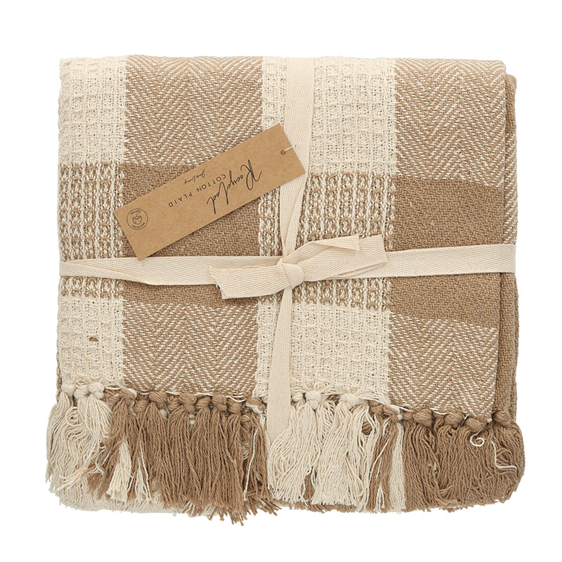 Recycled Cotton Plaid Kai Taupe - JENS Living