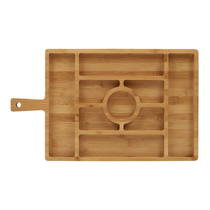 Deze bits & bites tray is een stijlvolle en praktische serveerplank voor tapas, snacks en kleine bites. De tray is gemaakt van natuurlijk bamboe en is voorzien van meerdere vakjes, zodat je hapjes overzichtelijk kunt presenteren. Dankzij het handvat serveer je hem gemakkelijk aan tafel.