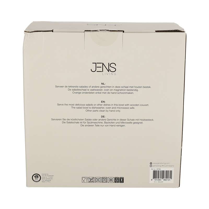 Deze set is een stijlvolle toevoeging voor elke maaltijd. De keramieken schaal heeft een moderne look en wordt geleverd met bijpassend, houten bestek. Perfect voor frisse salades, pastagerechten of het serveren van bijgerechten tijdens een diner. Een praktische en elegante toevoeging aan elke gedekte tafel.