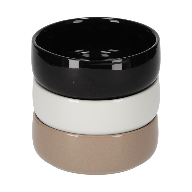 Deze serveerschaaltjes zijn perfect voor dagelijks gebruik. De set bestaat uit drie keramieken schaaltjes in de kleuren wit, taupe en zwart. Perfect voor tapas, dips of kleine snacks. Een moderne, praktische set voor elke gelegenheid.