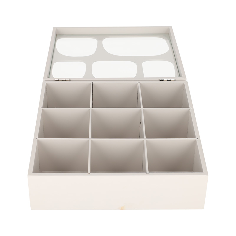 Geniet van ieder theemoment met deze theedoos. De theedoos combineert een strak, modern design met organisch gevormde ruitjes voor een subtiele, natuurlijke touch. De negen compartimenten bieden ruimte aan verschillende theesoorten, zodat je favoriete smaken altijd binnen handbereik zijn.