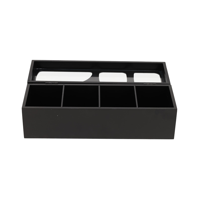 Geniet van ieder theemoment met deze theedoos. De theedoos combineert een strak, modern design met organisch gevormde ruitjes voor een subtiele, natuurlijke touch. De vier compartimenten bieden ruimte aan verschillende theesoorten, zodat je favoriete smaken altijd binnen handbereik zijn.