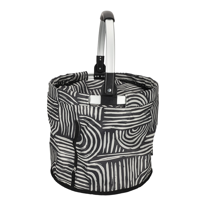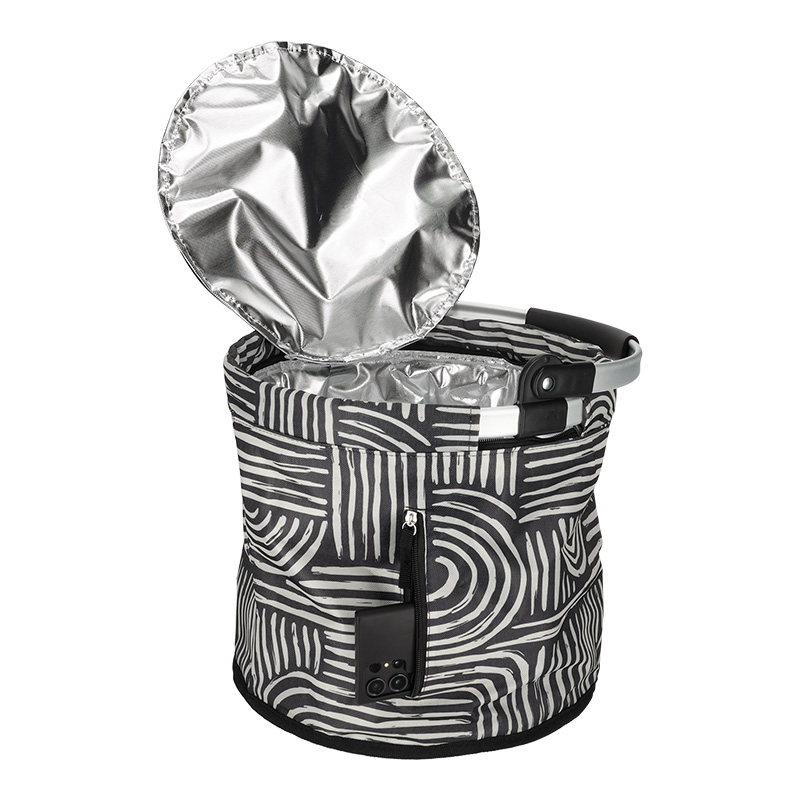 Deze ronde koeltas is zowel praktisch als stijlvol. Dankzij de isolerende aluminium voering en de afsluitbare deksel blijven drankjes en snacks urenlang koel. De stevige aluminium handgreep maakt dragen eenvoudig, zelfs bij een volle inhoud. Perfect voor picknicks, stranddagen of boodschappen.
