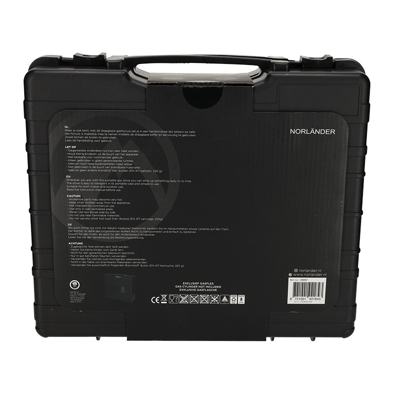 Dit kookstel is een betrouwbaar en draagbaar gasstel voor onderweg. Het stevige ontwerp maakt het kookstel ideaal voor kamperen, roadtrips of gebruik in de buitenlucht. Dankzij het compacte formaat neem je het kookstel eenvoudig mee en zet je in een handomdraai een warme maaltijd op tafel. Het kookstel is geschikt voor pannen tot Ø20 cm. Wordt geleverd exclusief gasfles. Uitsluitend geschikt voor EN 417-goedgekeurde butaangaspatronen (220 g). Lees de bijgeleverde handleiding voor gebruik.