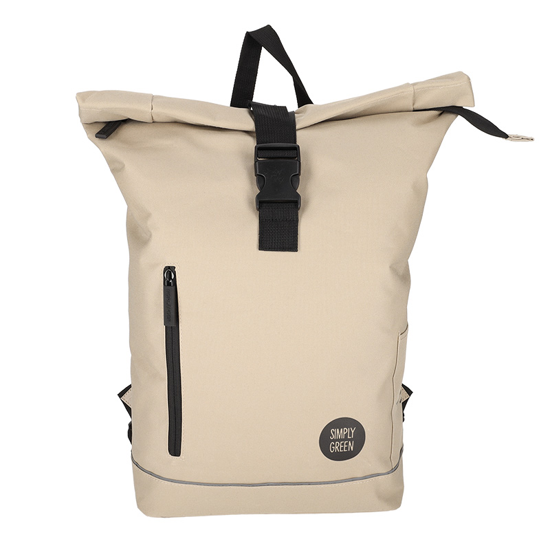 De Simply Green rol rugtas is gemaakt van stevig RPET polyester en heeft daardoor een duurzaam karakter. In de tas zijn maar liefst 10 gerecyclede PET flessen verwerkt. Dankzij de gewatteerde achterzijde en verstelbare schouderbanden is de tas erg comfortabel. De tas sluit aan de bovenzijde met een rits en kan daarna worden opgerold en vastgezet met een stevige buckle sluiting. Het afsluitbare voorvak met verticale rits maakt de tas zowel praktisch als stijlvol.