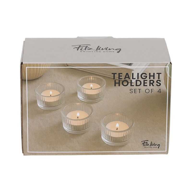 Deze set van 4 theelichthouders zorgt direct voor een warme en gezellige uitstraling in elke ruimte. Dankzij het compacte formaat passen de theelichthouders moeiteloos op tafels, dressoirs of vensterbanken.