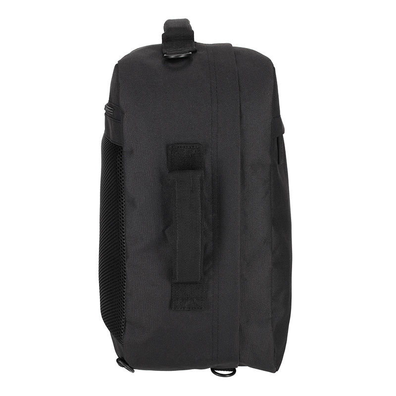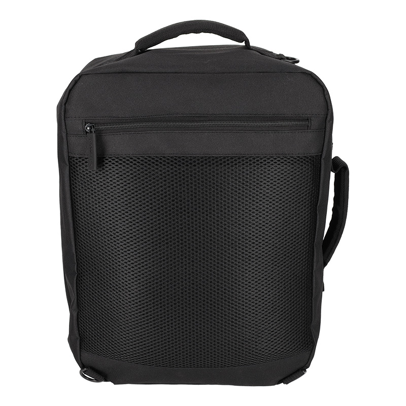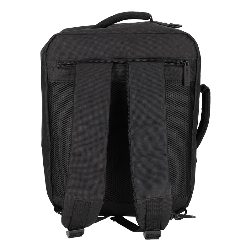 Deze rugtas van gerecycled polyester is ontworpen om onder een vliegtuigstoel te passen en hoeft daardoor niet te worden ingecheckt. Het ruime hoofdvak kan volledig worden open geritst en bevat handige meshvakken en een bucklesluiting om reisbenodigdheden netjes op hun plek te houden. Het voorvak is ideaal voor items zoals een oplader of paspoort. Dankzij de foampadding op de rug draagt de tas comfortabel. De schouderbanden zijn eenvoudig op te bergen, waardoor de tas met de meegeleverde schouderband ook als schoudertas kan worden gebruikt.