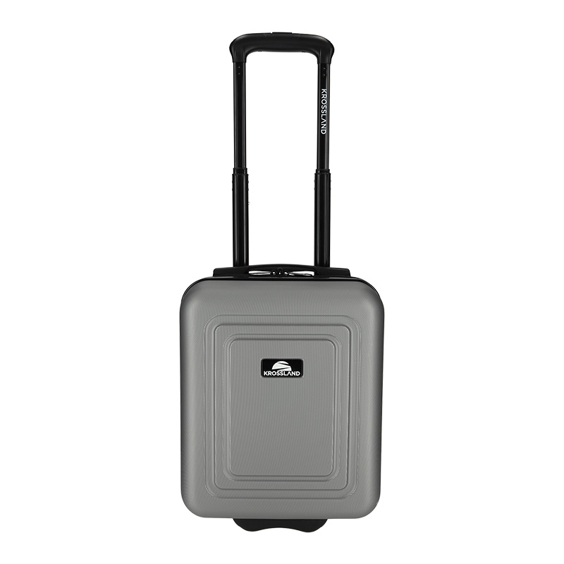 Deze compacte KROSSLAND trolley is speciaal gemaakt om onder de stoel in het vliegtuig te passen. Hierdoor mag de trolley mee in het vliegtuig en hoef je na de landing niet te wachten op bagage. De trolley heeft een uitschuifbare stang en twee luxe soft wieltjes. De binnenzijde bestaat uit een hoofdcompartiment met buckles en een ritsvak. Aan de voorzijde zit een metalen badge van 58 x 25 mm. Hier kan eenvoudig een doming sticker overheen worden geplakt.