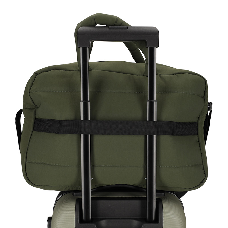 Deze hippe weekendtas combineert een zachte, comfortabele look met praktische functies voor onderweg. Aan de voorkant vind je een ruim ritsvak voor items die je snel wilt kunnen pakken, terwijl er aan de zijkant ruimte is voor een fles of accessoires. De achterzijde is uitgerust met een handige trolleystrap, zodat je de tas eenvoudig op een koffer bevestigt tijdens het reizen. Het grote hoofdvak biedt volop ruimte voor kleding, schoenen en essentials voor een weekend weg. Een comfortabele en functionele weekendtas die klaar is voor elke trip.