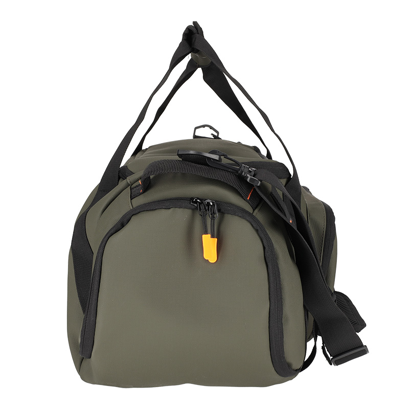 Deze weekendtas is een sportieve en praktische tas voor trips, sportsessies en dagelijks gebruik. De tas heeft een ruim voorvak met rits voor items die je snel wilt pakken en een ruim hoofdvak. Aan beide zijkanten is een ritsvak, waarvan een voor het opbergen van schoenen of vieze was. Zo blijft je kleding fris. De oranje accenten in de ritsen en stiksels geven de tas een stoere, herkenbare uitstraling. Dankzij de stevige handgrepen en comfortabele schouderband draag je de tas gemakkelijk met je mee.