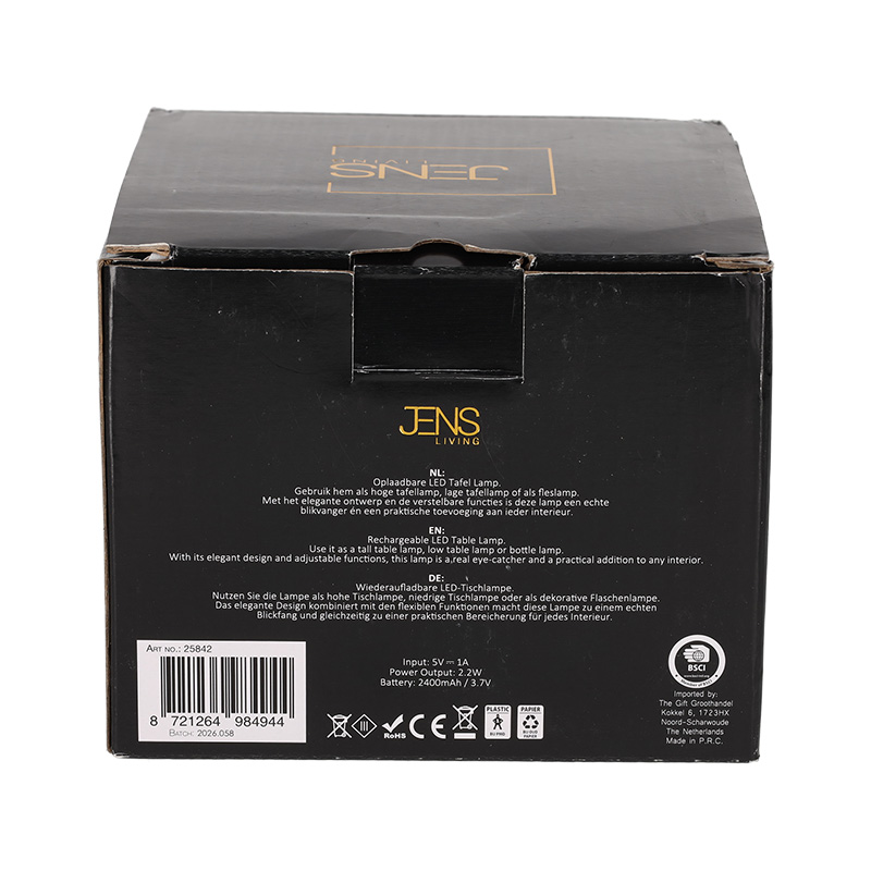 Breng sfeer en stijl in huis met deze oplaadbare tafellamp. Gebruik hem als hoge of lage tafellamp of plaats de lamp op een fles voor een uniek effect. De lamp heeft meerdere lichtinstellingen en is bovendien dimbaar. Met het stijlvolle ontwerp en de verstelbare functie is deze lamp een onmisbare toevoeging aan ieder interieur.