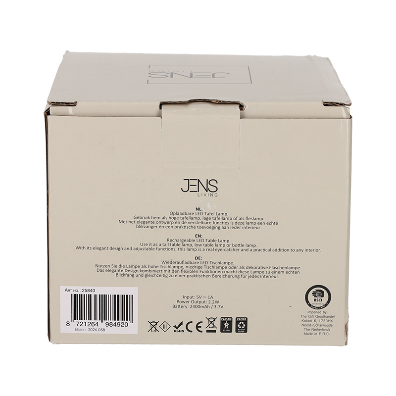 Breng sfeer en stijl in huis met deze oplaadbare tafellamp. Gebruik hem als hoge of lage tafellamp of plaats de lamp op een fles voor een uniek effect. De lamp heeft meerdere lichtinstellingen en is bovendien dimbaar. Met het stijlvolle ontwerp en de verstelbare functie is deze lamp een onmisbare toevoeging aan ieder interieur.